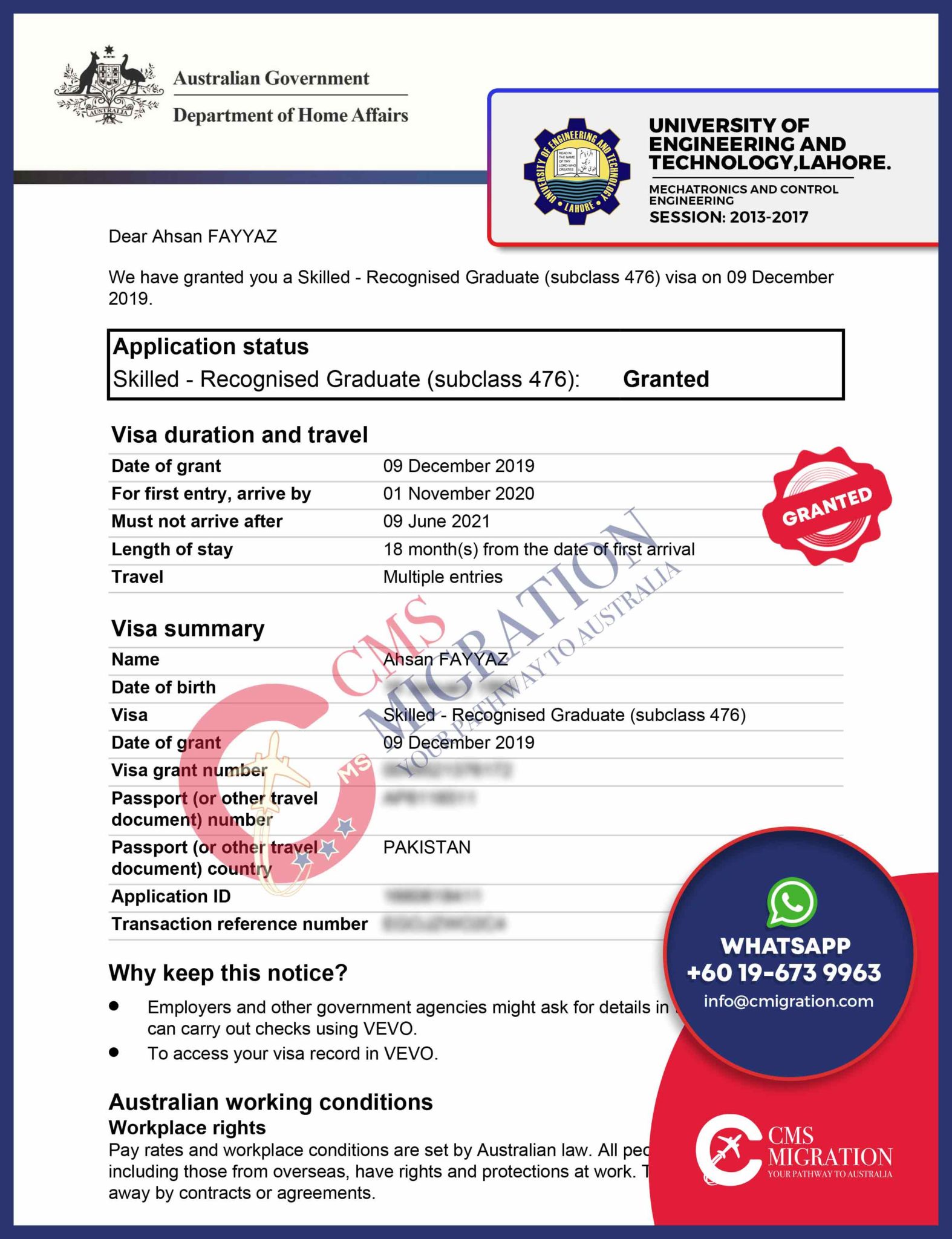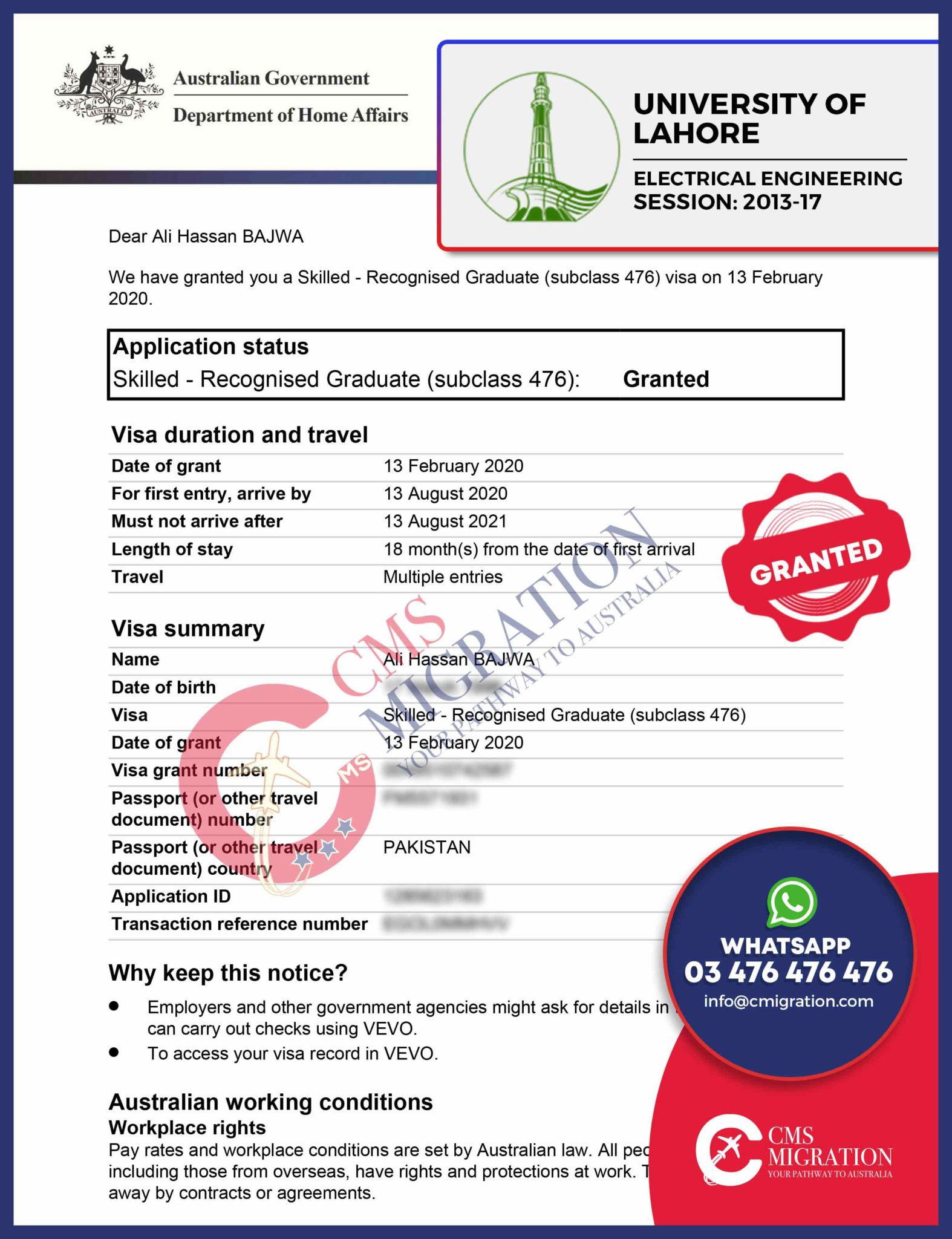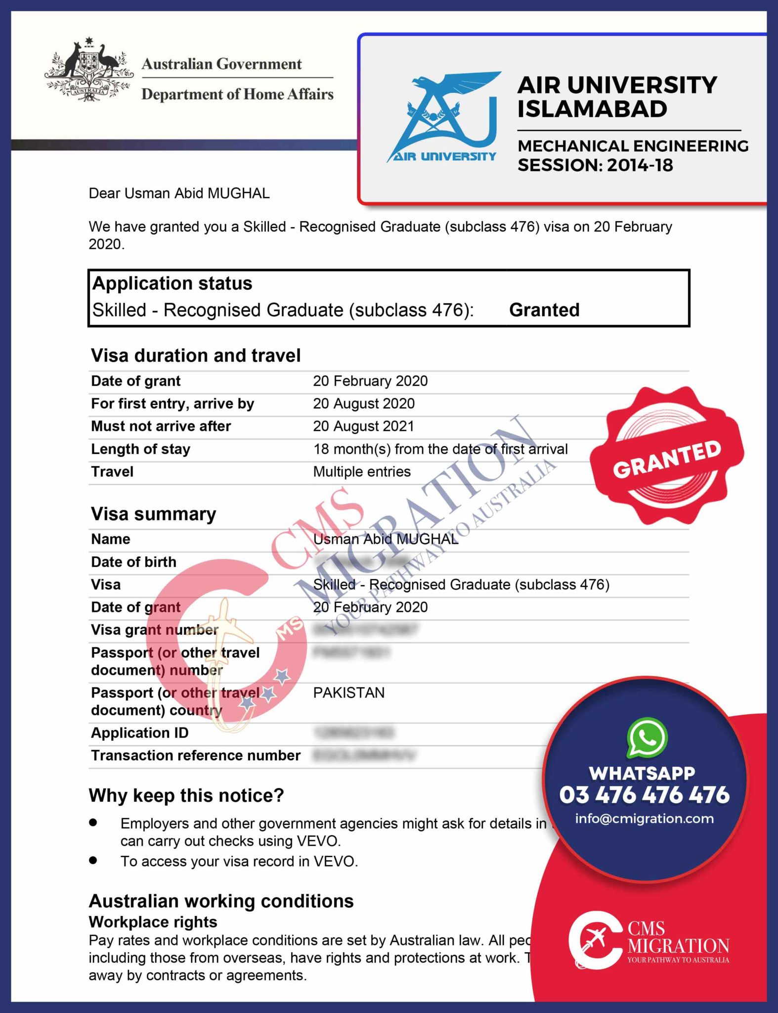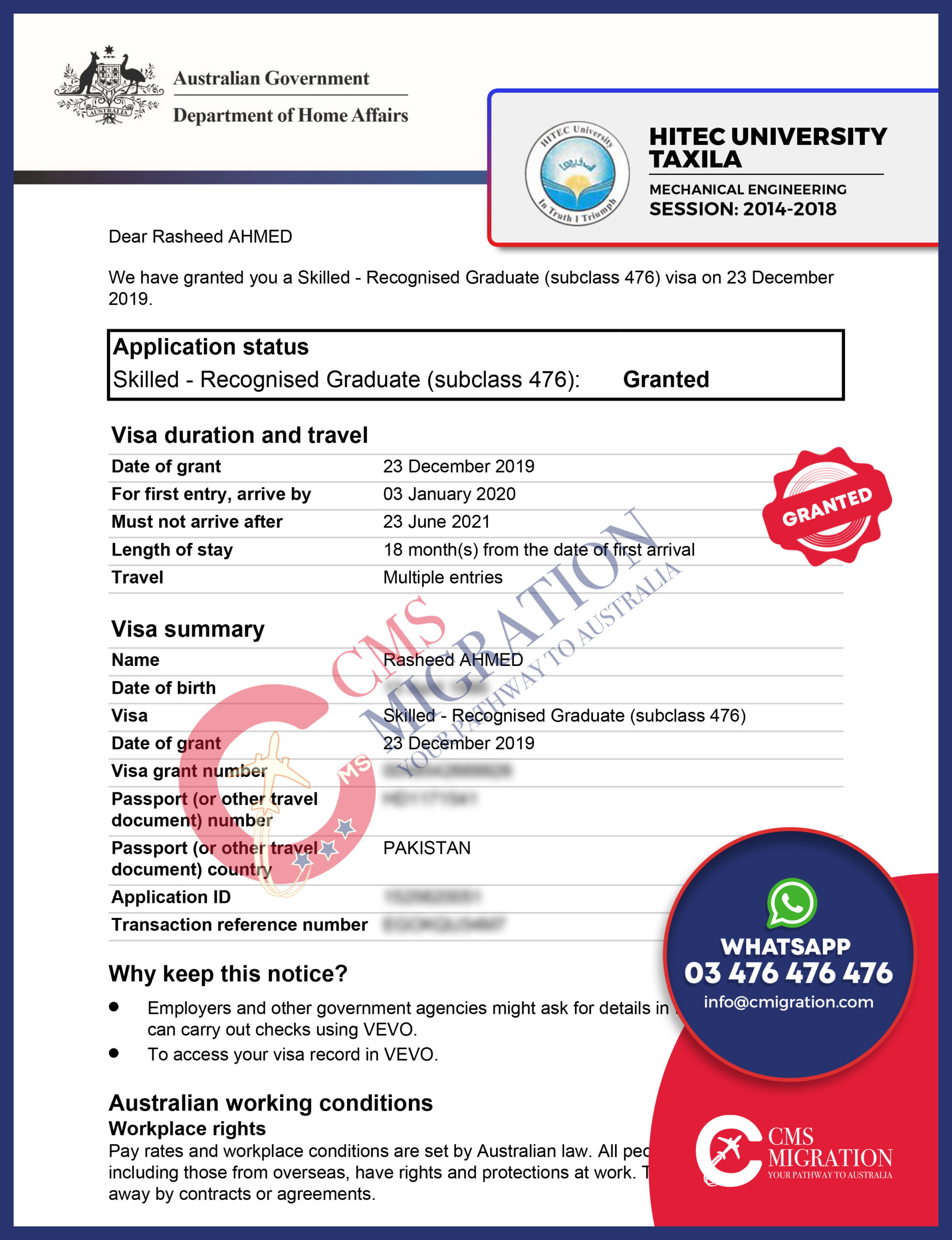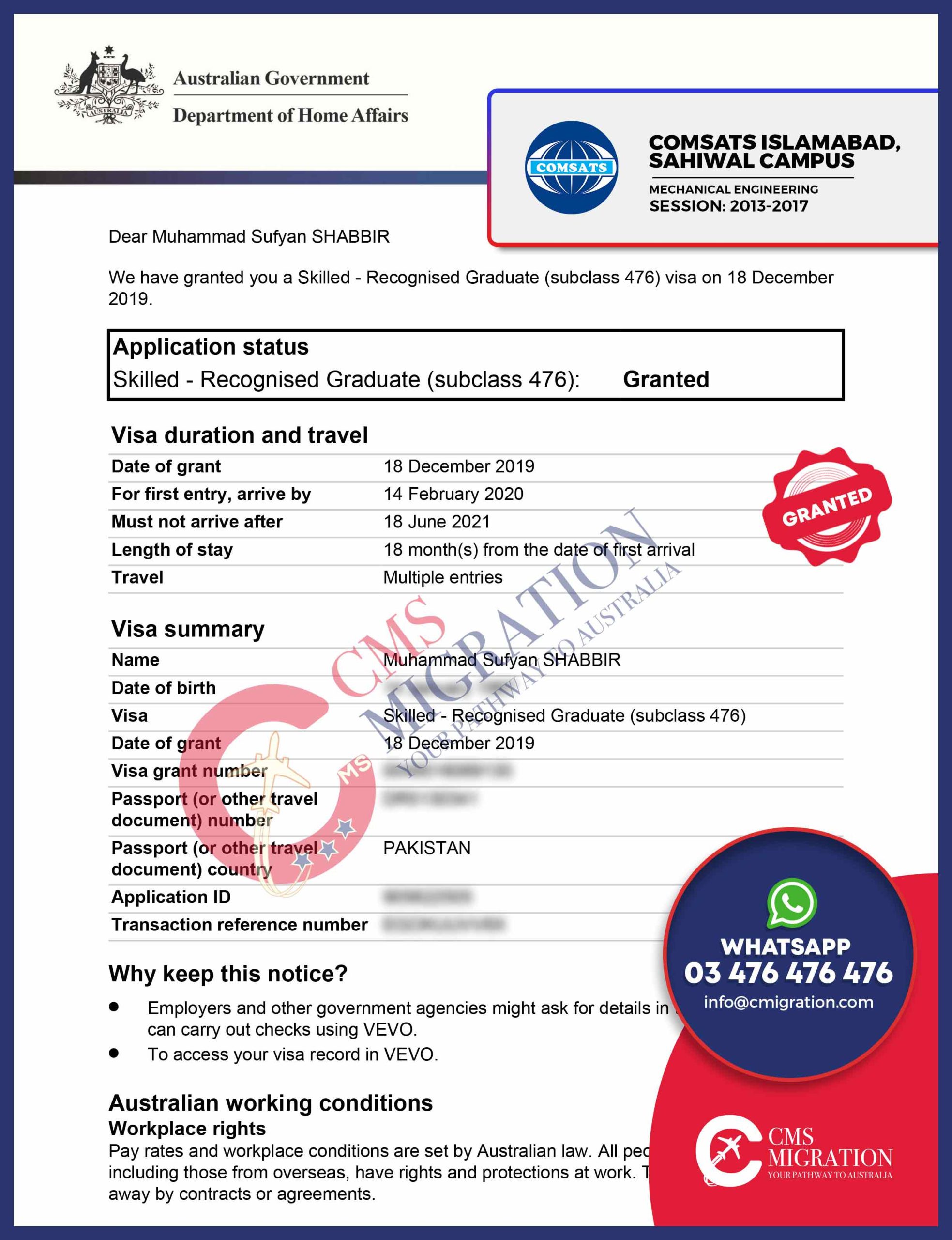 GET YOUR SUBCLASS 476 GRANT NOW, THROUGH CMS MIGRATION!